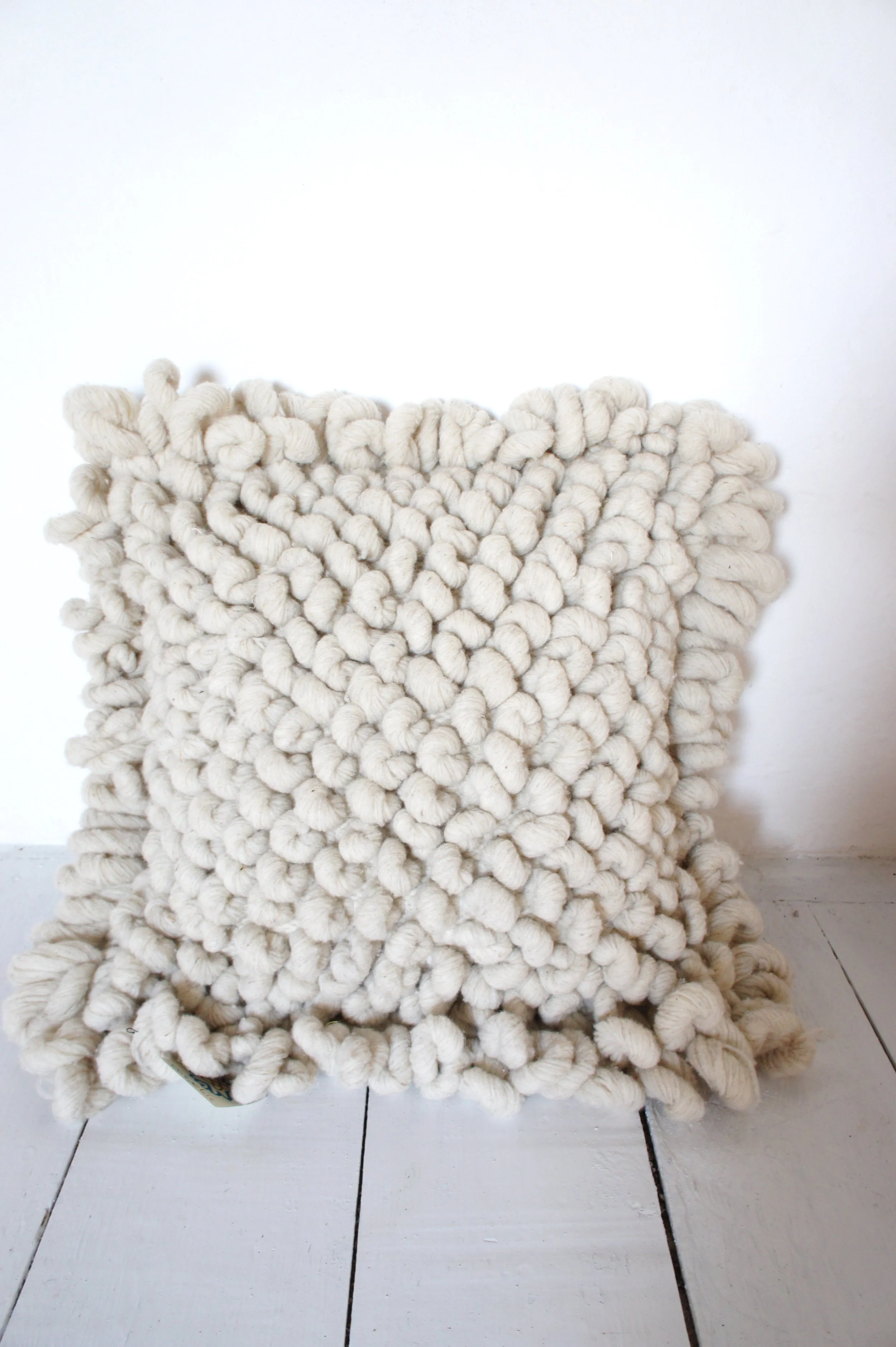 Collaborating with various artisan families in the town of Gualupita, Estado de Mexico, we worked with weavers to revive a typical textured weaving style which became popular in Mexico in the 1950’s through the 1960’s. We expanded upon this traditional weave by adding in playful details of gold, interesting color mixes and making x-large floor pillows for seating inanition to combining various weaving styles.