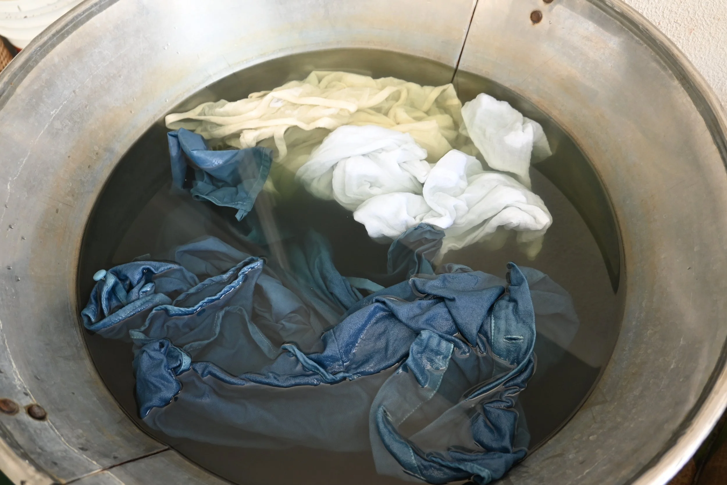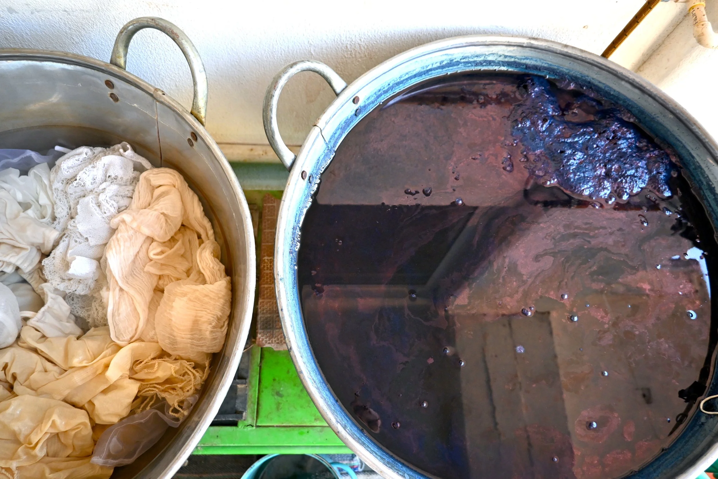 Añileros in Santiago Niltepec, Oaxaca, Mexico aerating water embedded with indigo pigment, an 8 hour labor intensive process.