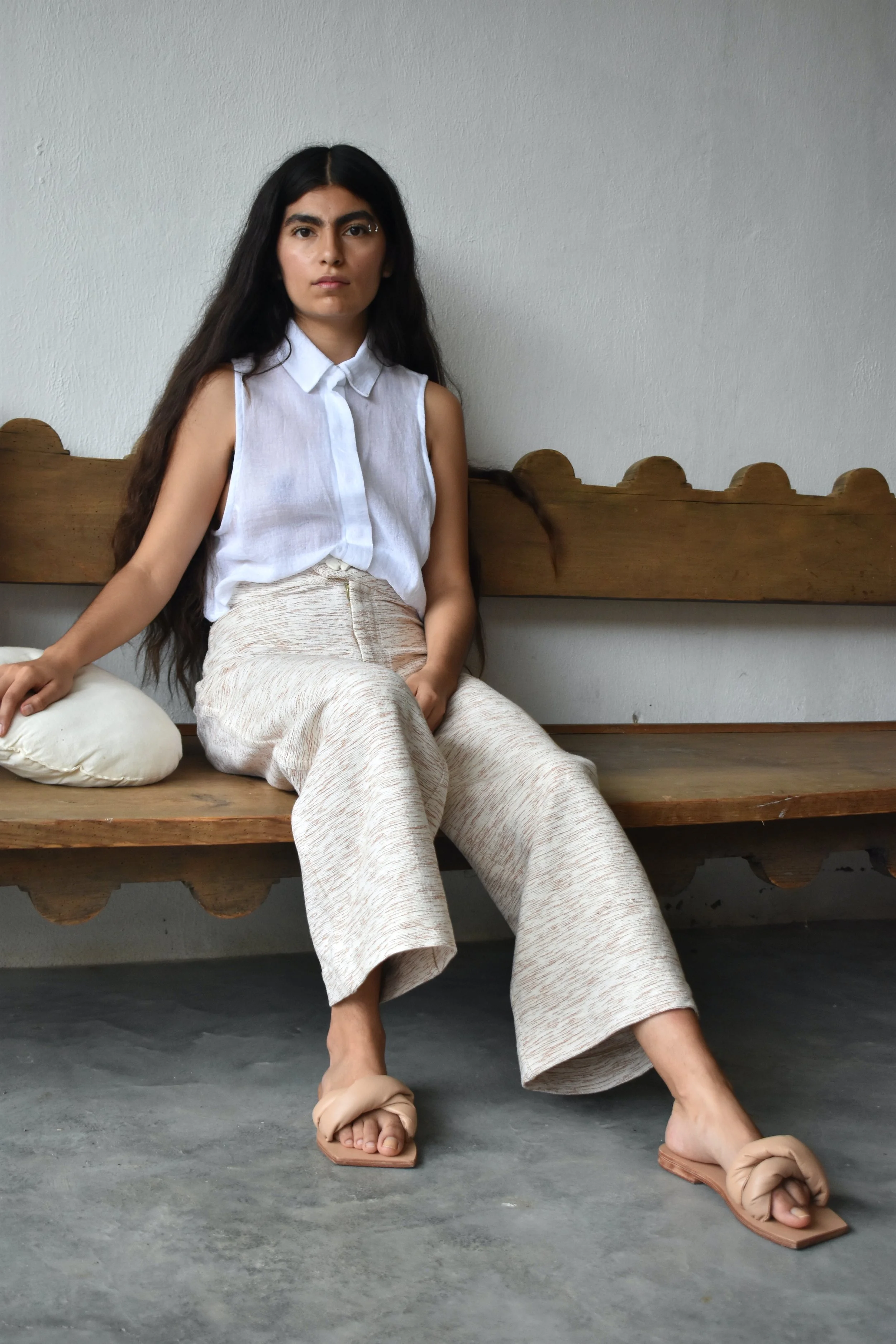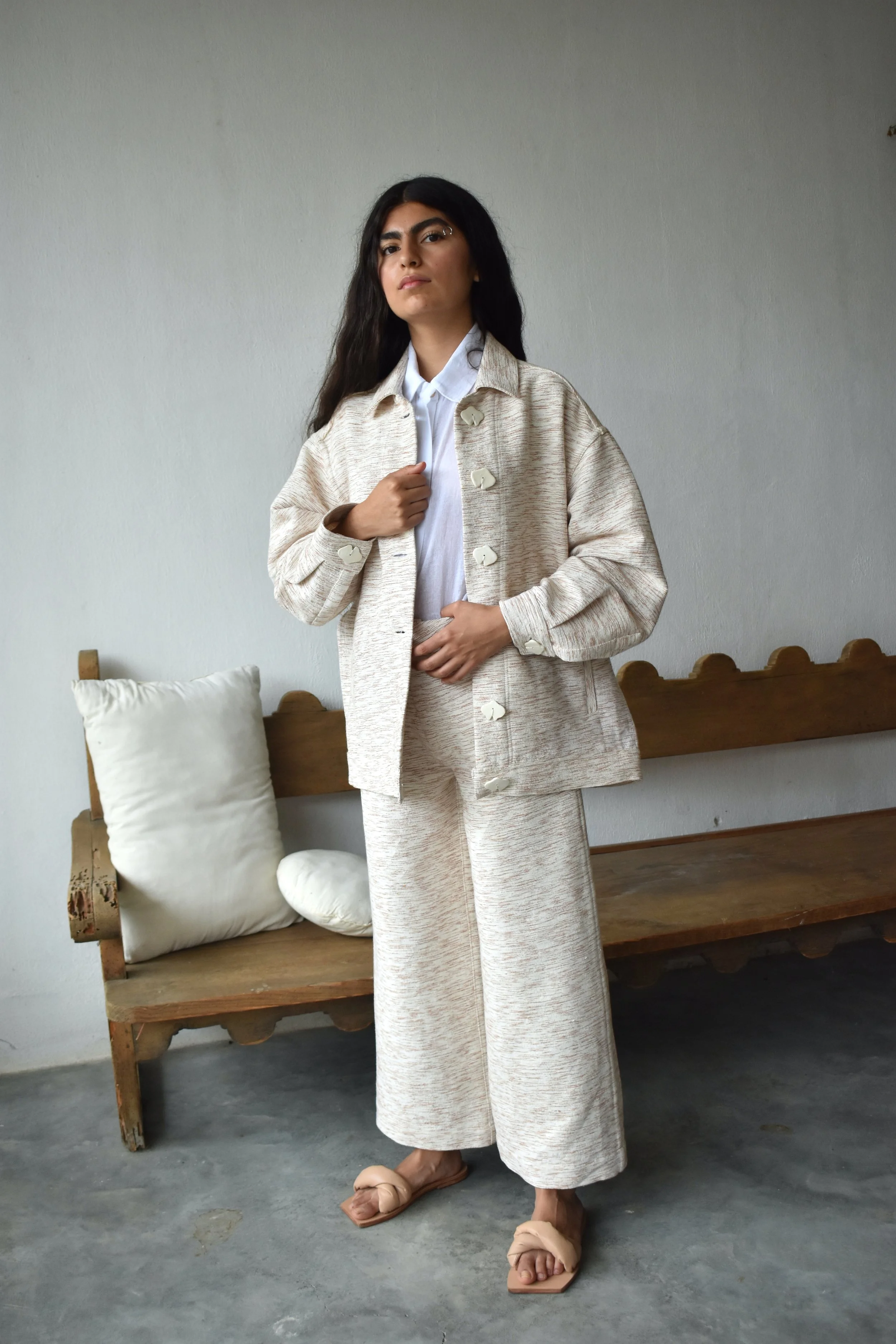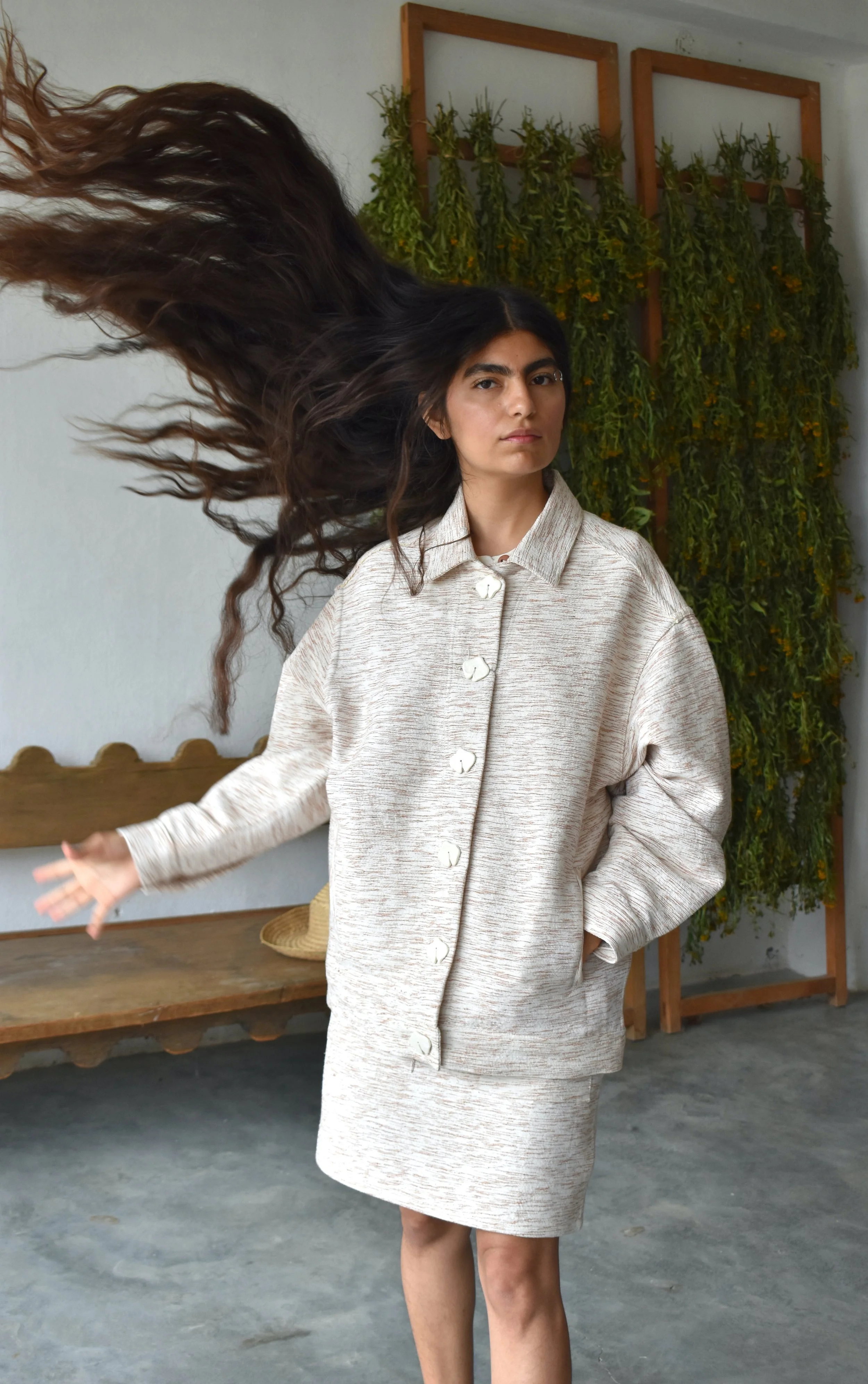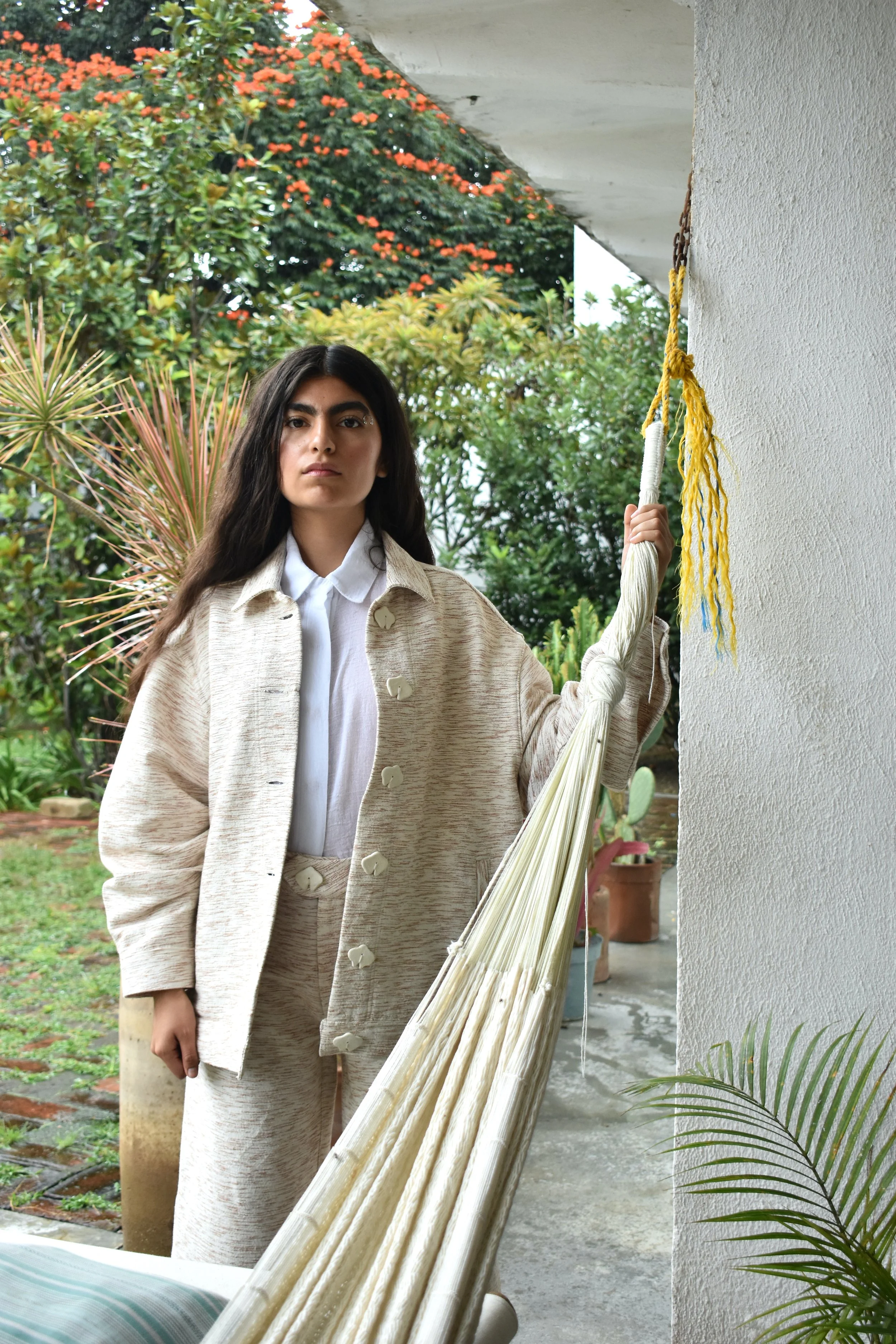 Ocala is a 4 piece micro-collection made with a beautiful heavy-weight handwoven cotton textile designed in collaboration with artisans in Oaxaca, Mexico. Hand woven on a pedal loom, expertly cut and sewn with French seam interiors in our Mexchic studio, available in 4 color ways. Along with exquisite ceramic buttons designed and hand crafted by ceramic duo Evelyn Alarcón and Boris Furlan of Sitio Serendipia.