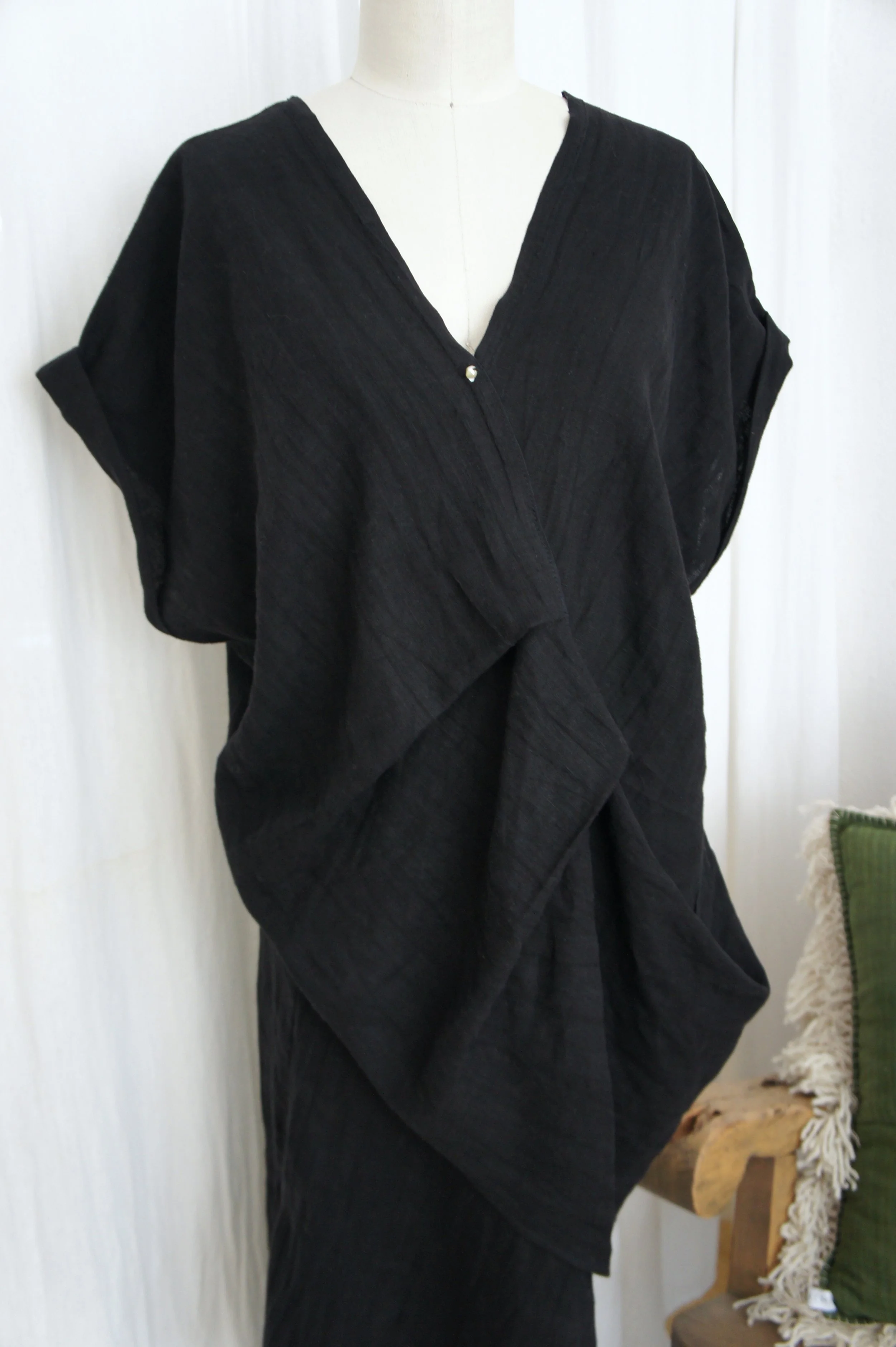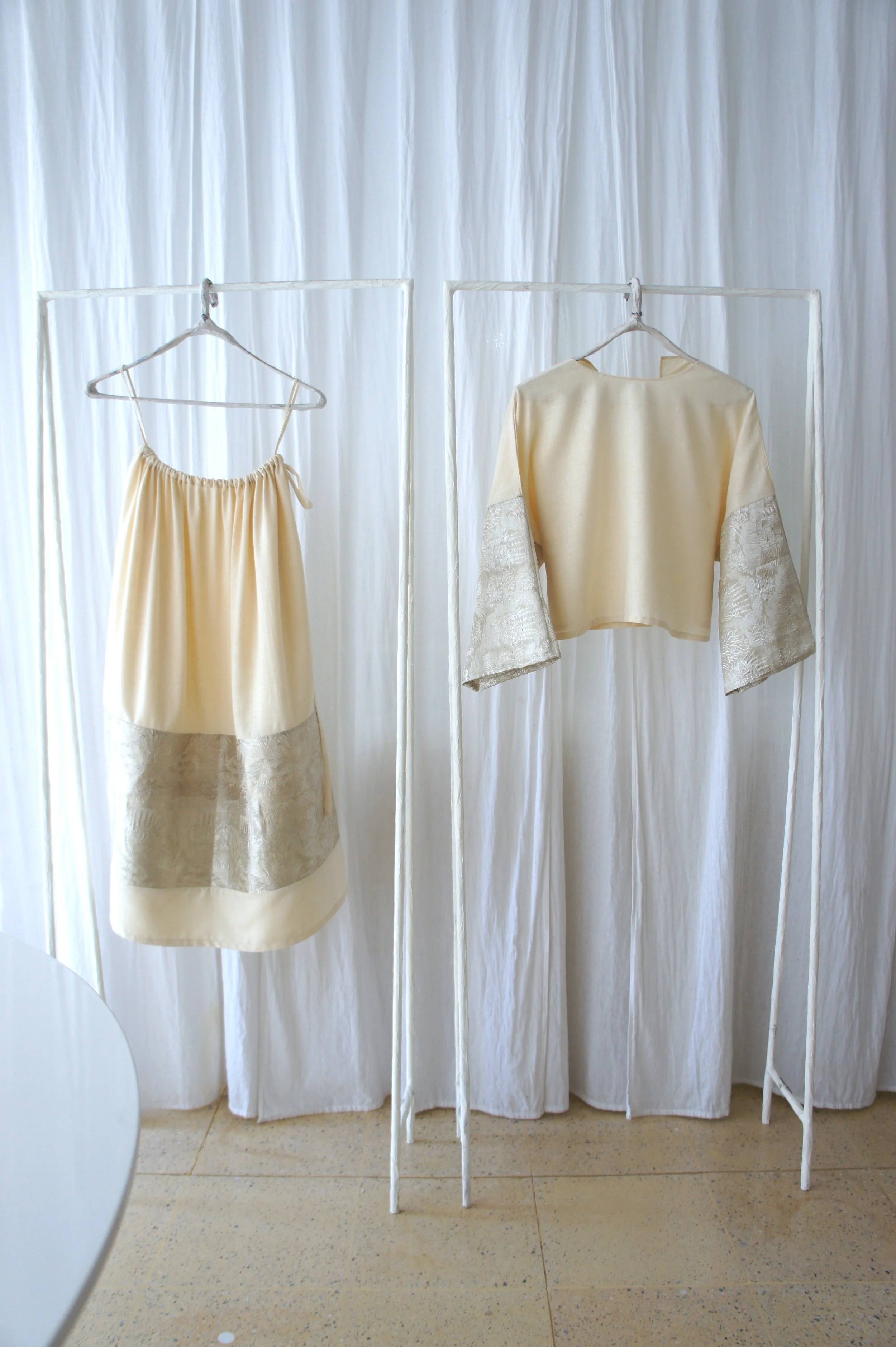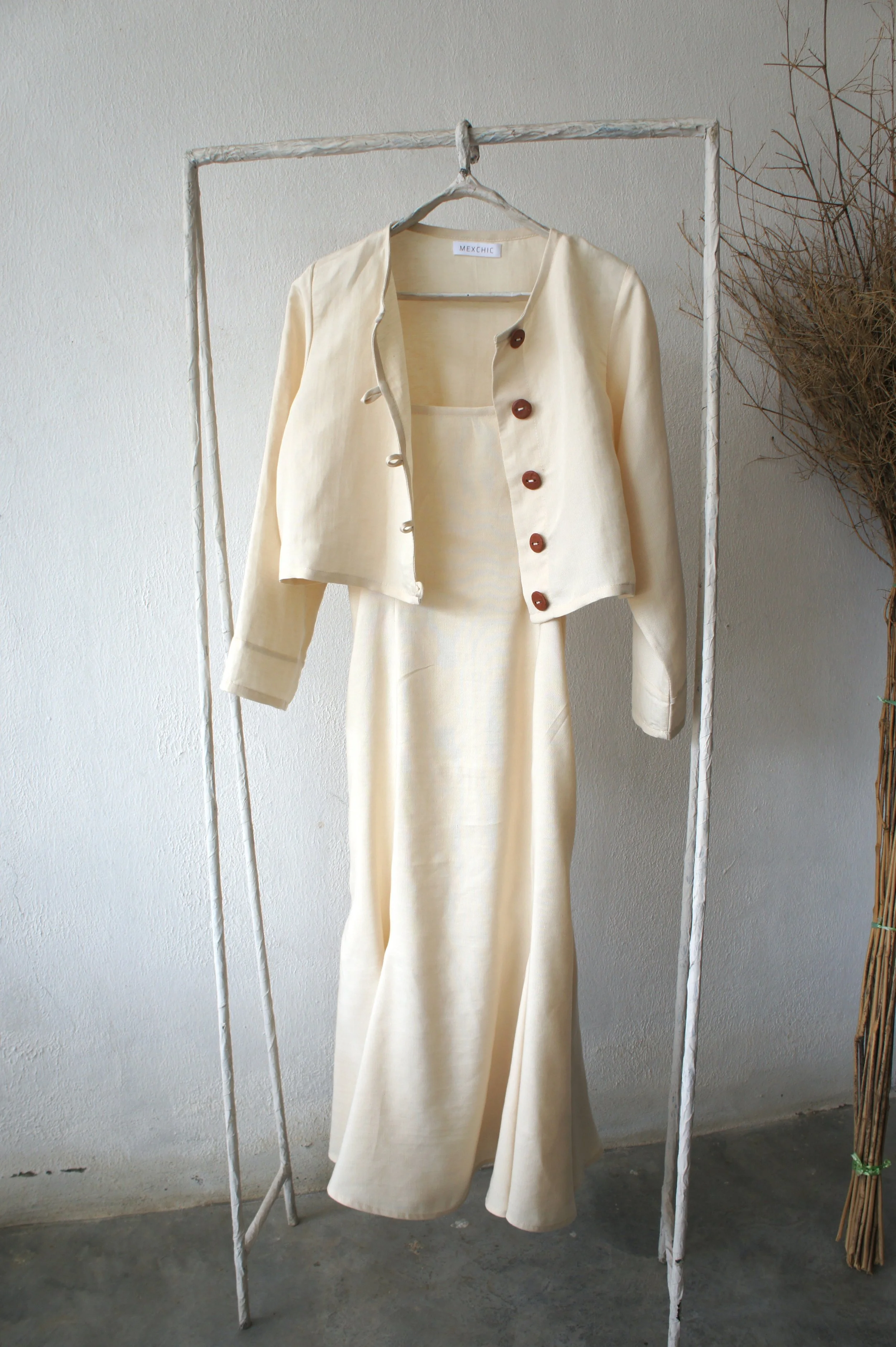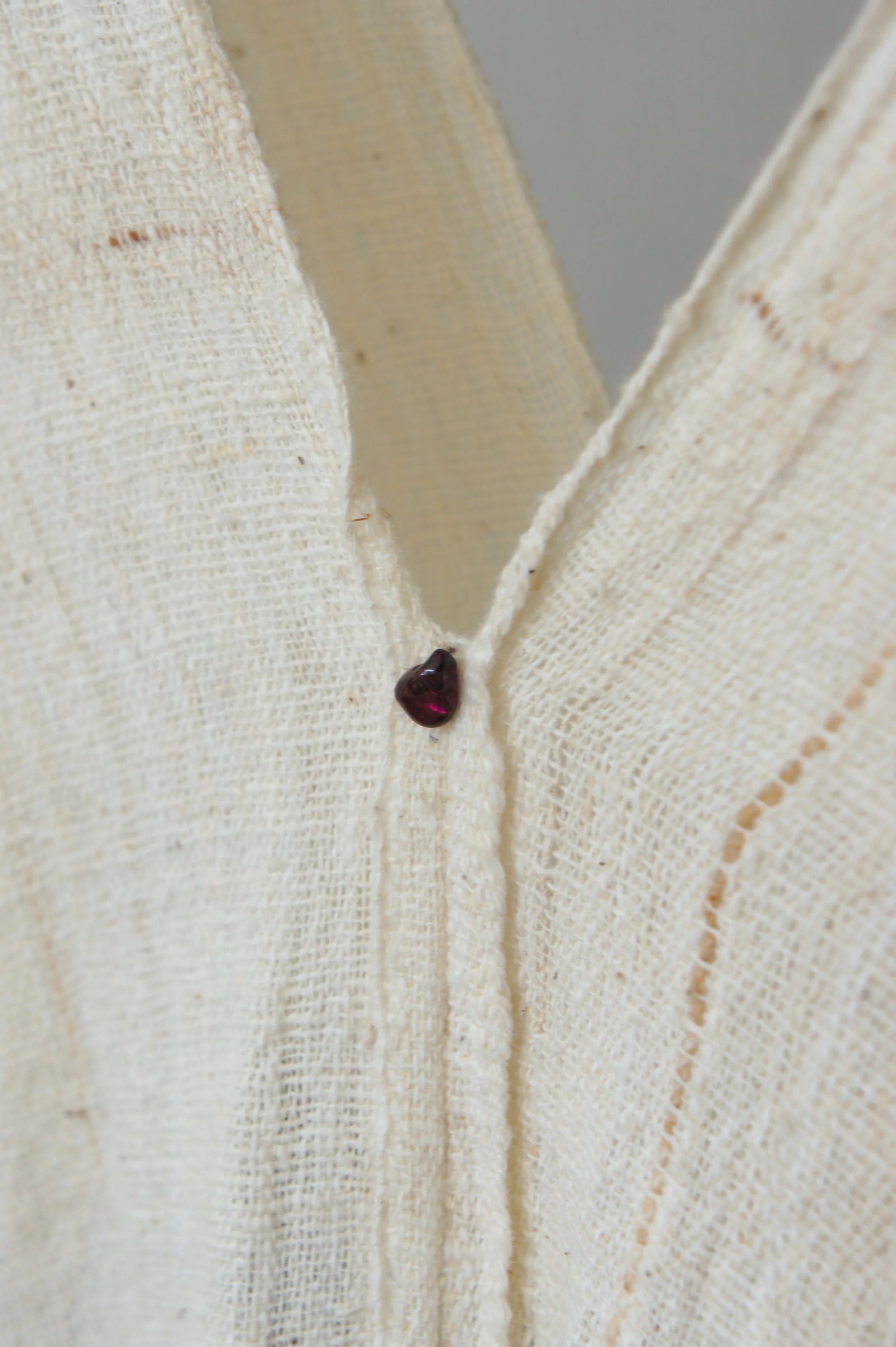 One of a kind clothing pieces made in the Mexchic studio through the year 2024, using handwoven, hand spun, vintage and antique textiles in regenerative native cotton, silks, and linen including details such as hand embroidery, macrame, semi precious stones, natural pearls and red clay. Exquisitely sewn and hand cut one by one in Oaxaca, Mexico.