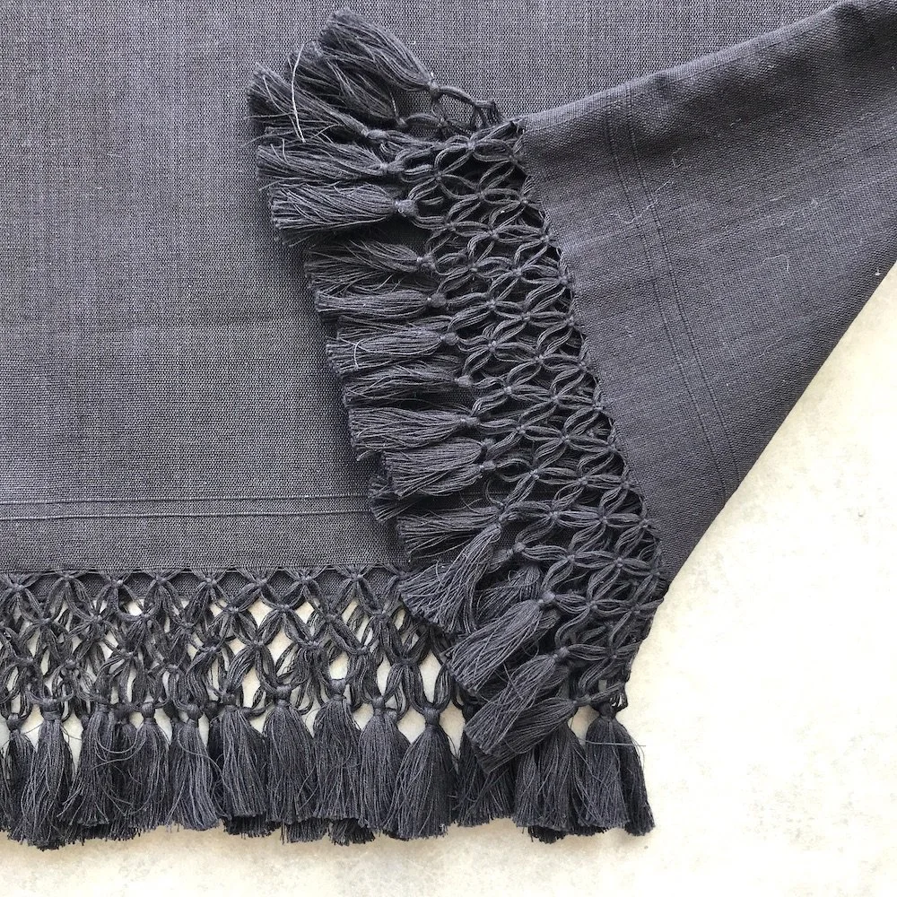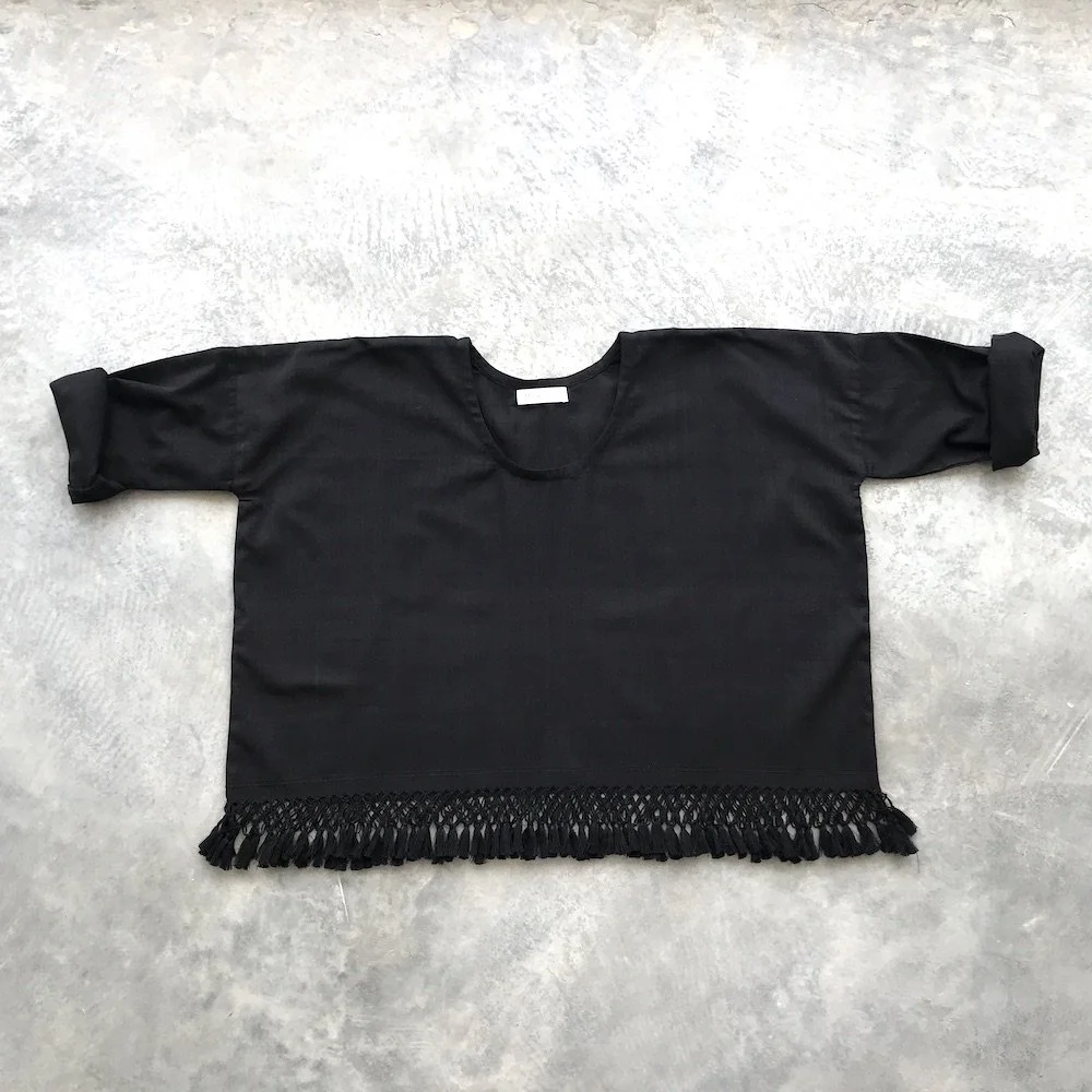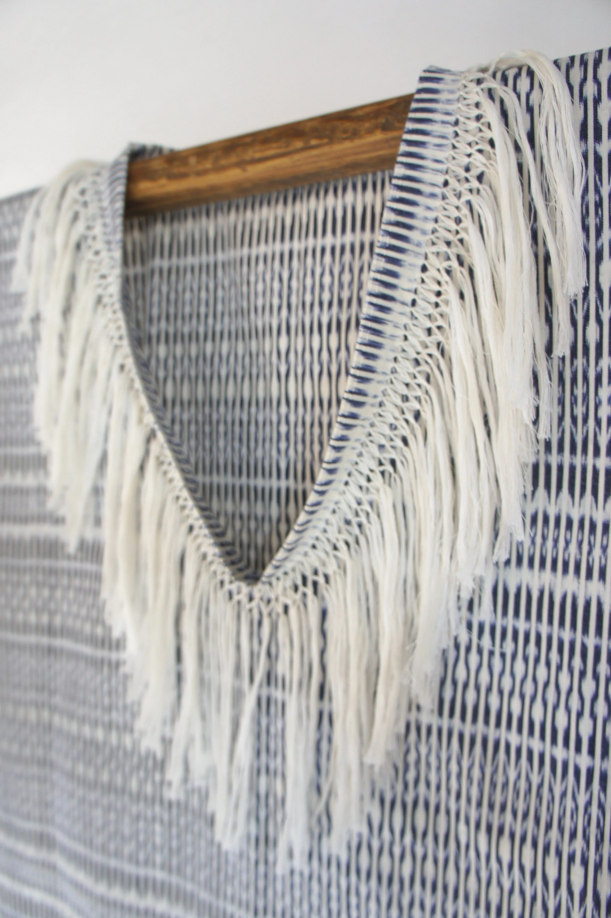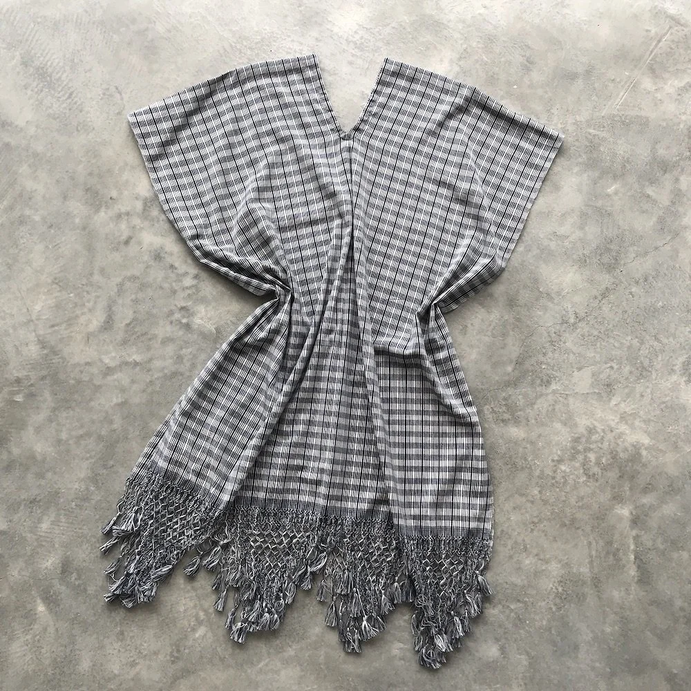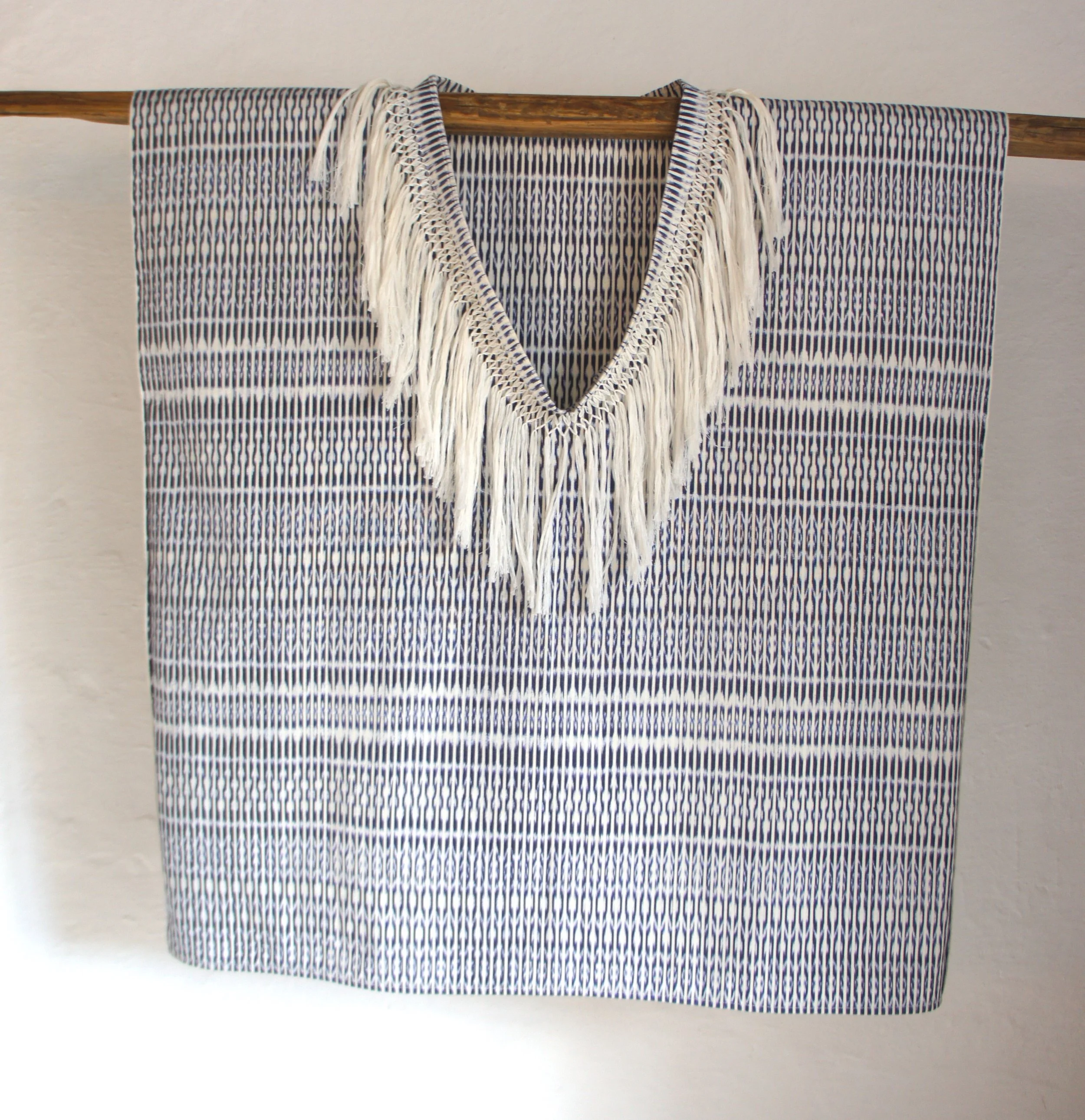 To create this range of textile forward clothing and accessories we incorporated extremely high quality, thin cotton yarn imported from India along with baby alpaca from Peru and collaborated with various artisan communities from around Mexico to bring it into existence: the textile is hand dyed and hand woven in Tenancingo, the macrame fringe, hand knotted in Malinalco and the embroidery on two pieces was based on traditional iconography and made by hand in Chiapas by indigenous women’s collective in Chenahlo. The cutting and sewing of each piece was done by hand between in our studios in Malinalco and Oaxaca.