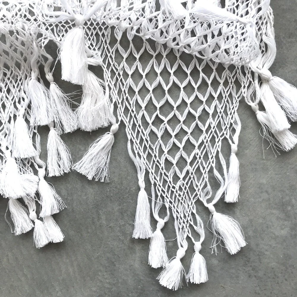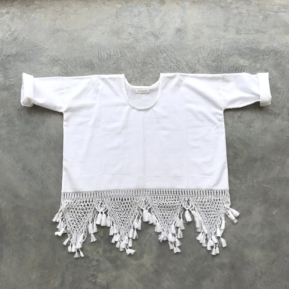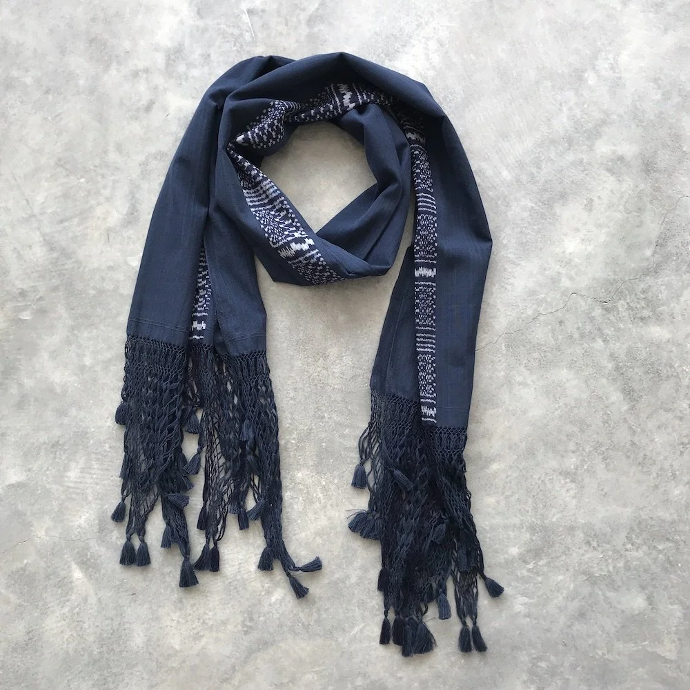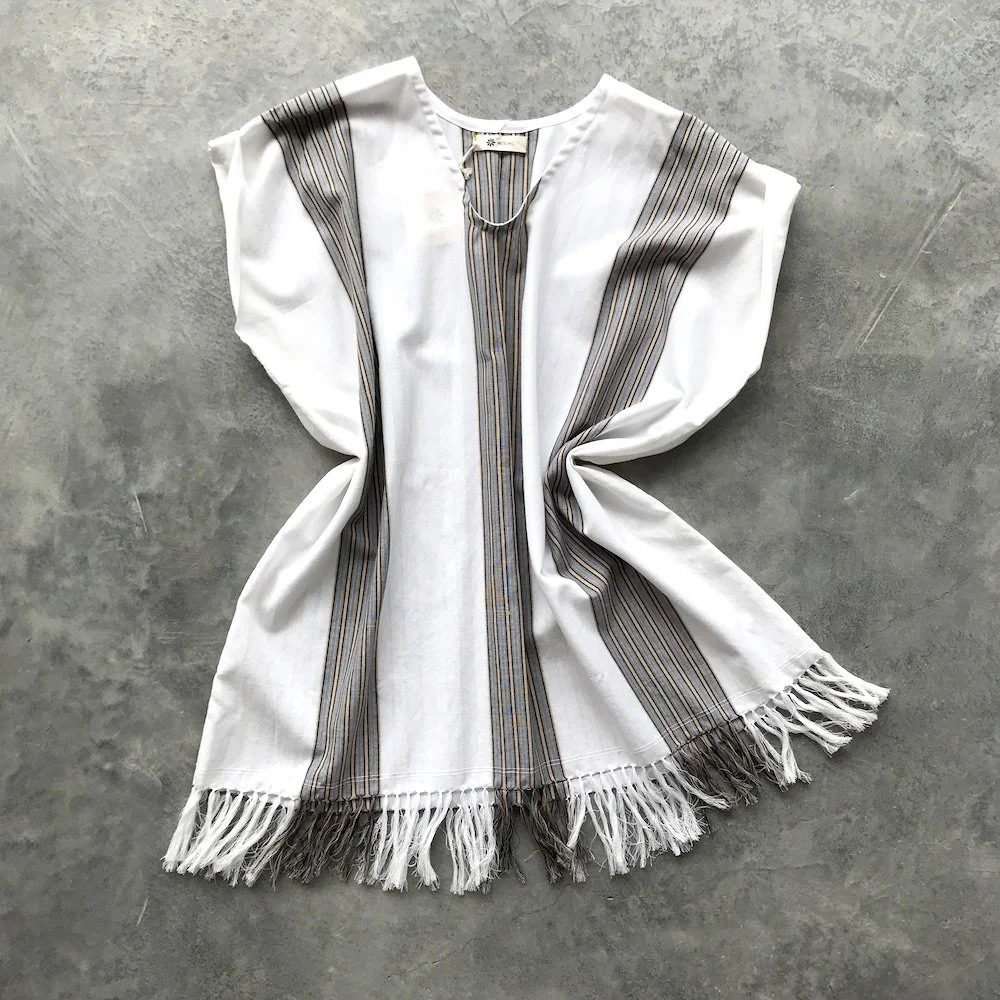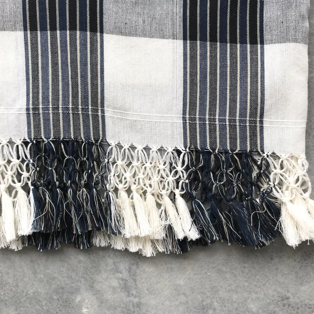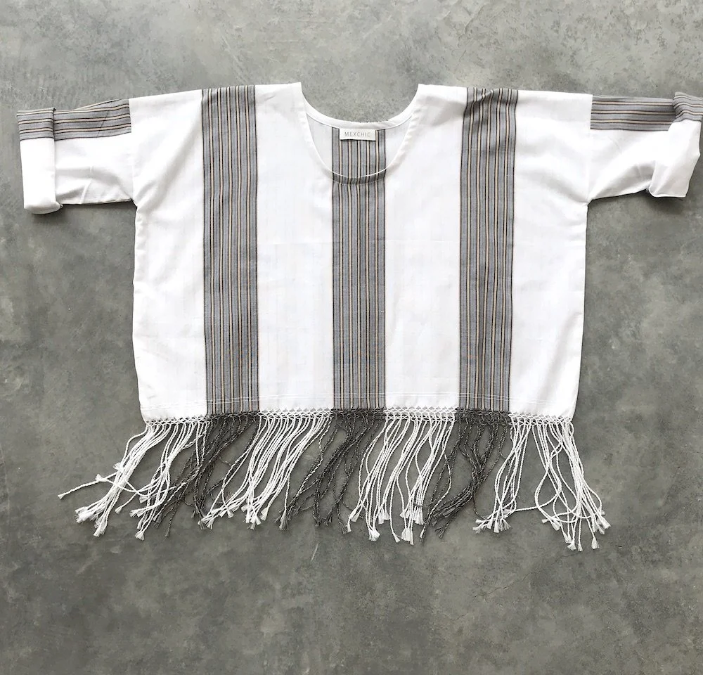 To create this range of textile forward clothing and accessories we incorporated extremely high quality, thin cotton yarn imported from India along with baby alpaca from Peru and collaborated with various artisan communities from around Mexico to bring it into existence: the textile is hand dyed and hand woven in Tenancingo, the macrame fringe, hand knotted in Malinalco and the embroidery on two pieces was based on traditional iconography and made by hand in Chiapas by indigenous women’s collective in Chenahlo. The cutting and sewing of each piece was done by hand between in our studios in Malinalco and Oaxaca.