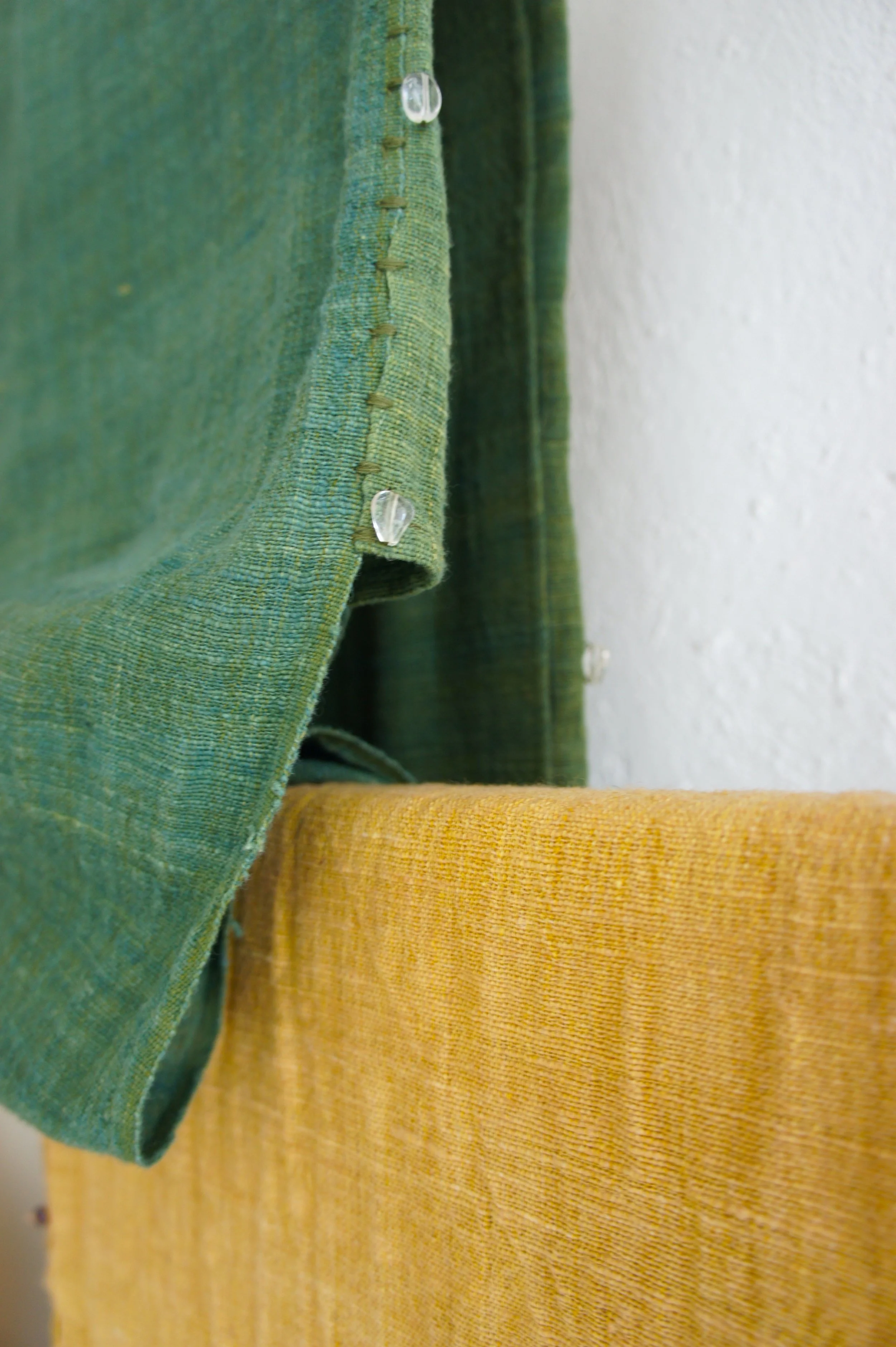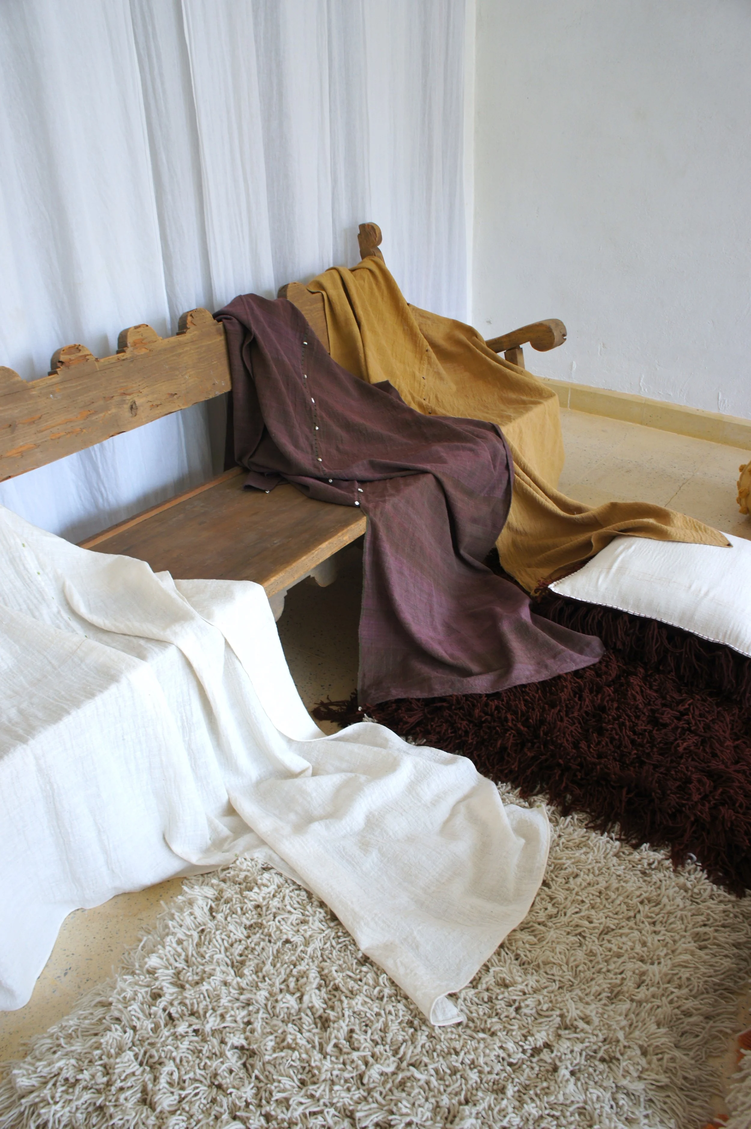 Color: Natural Dyes, pastel pinks and powdered blues, bright yellow