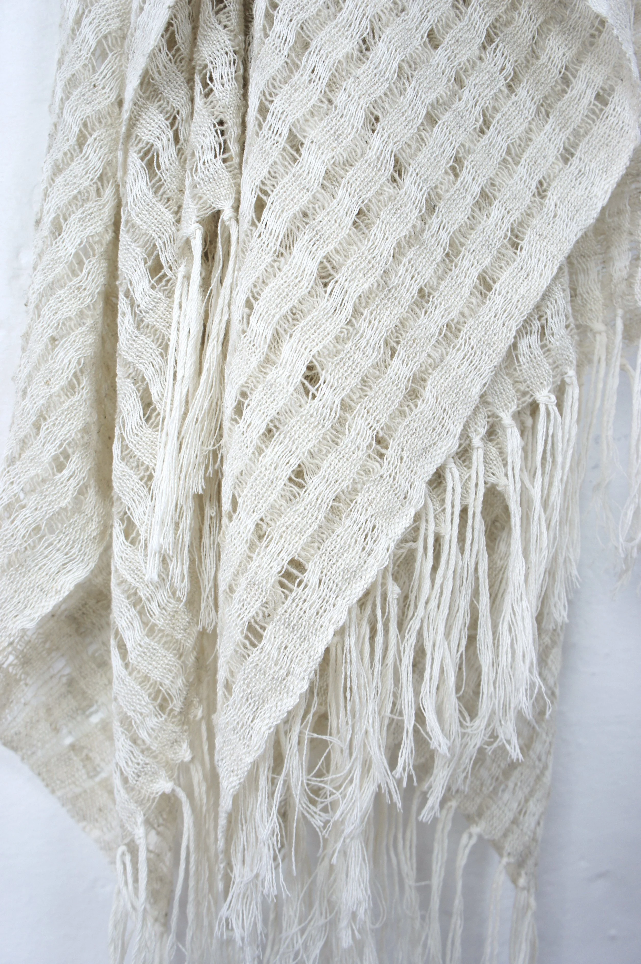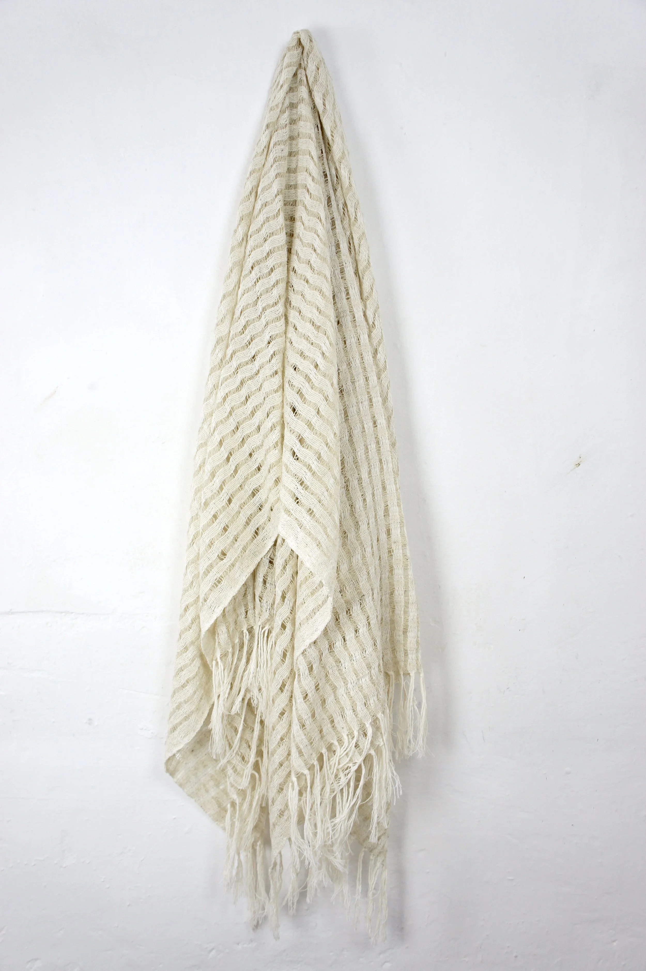 Creamy lightweight, wool mix blanket, handwoven on a flying shuttle loom in Toluca, the State of Mexico by a third generation weaver. 5 designs/ colors/ textures to choose from